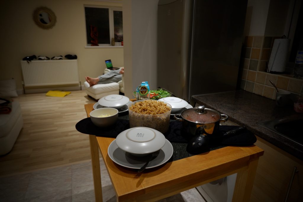 Ollie is driving so I prepare the food. So Ollie can watch Arsenal.
